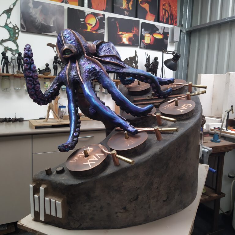 From intimate bronze figures to commanding garden installations, each piece explores the intersection of protection and liberation. Browse sculptures in metal, cement, and clay, alongside handcrafted copper jewelry created from recycled materials.